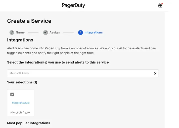 Finally, select the Microsoft Sentinel option under the Integrations section, then click “Create Service”.