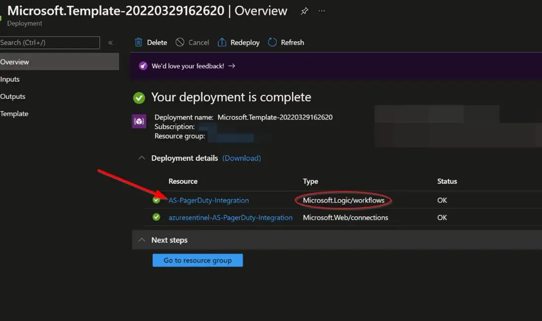 - Select the “Subscription” and “Resource Group” from the dropdown boxes you would like the playbook deployed to.